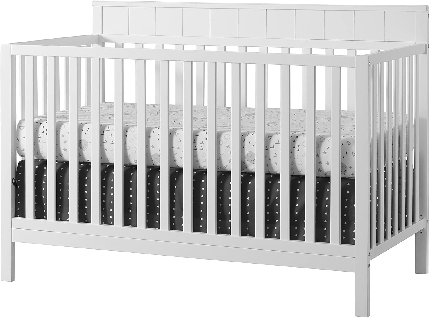4-in-1 convertible crib that transitions from a baby crib to a toddler bed, daybed, and full-size bed for long-term use (conversion kits and bunkie board sold separately).