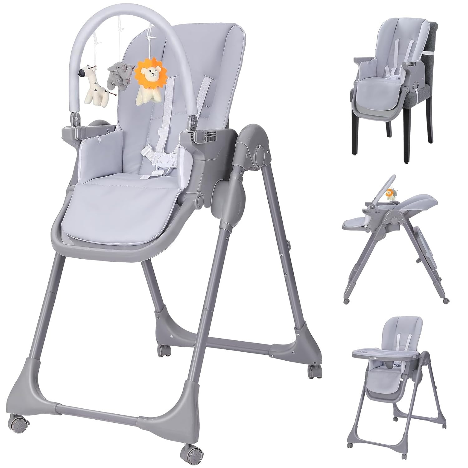Functions as high chair, toddler chair, booster seat, and moreStable frame with 5-point harness